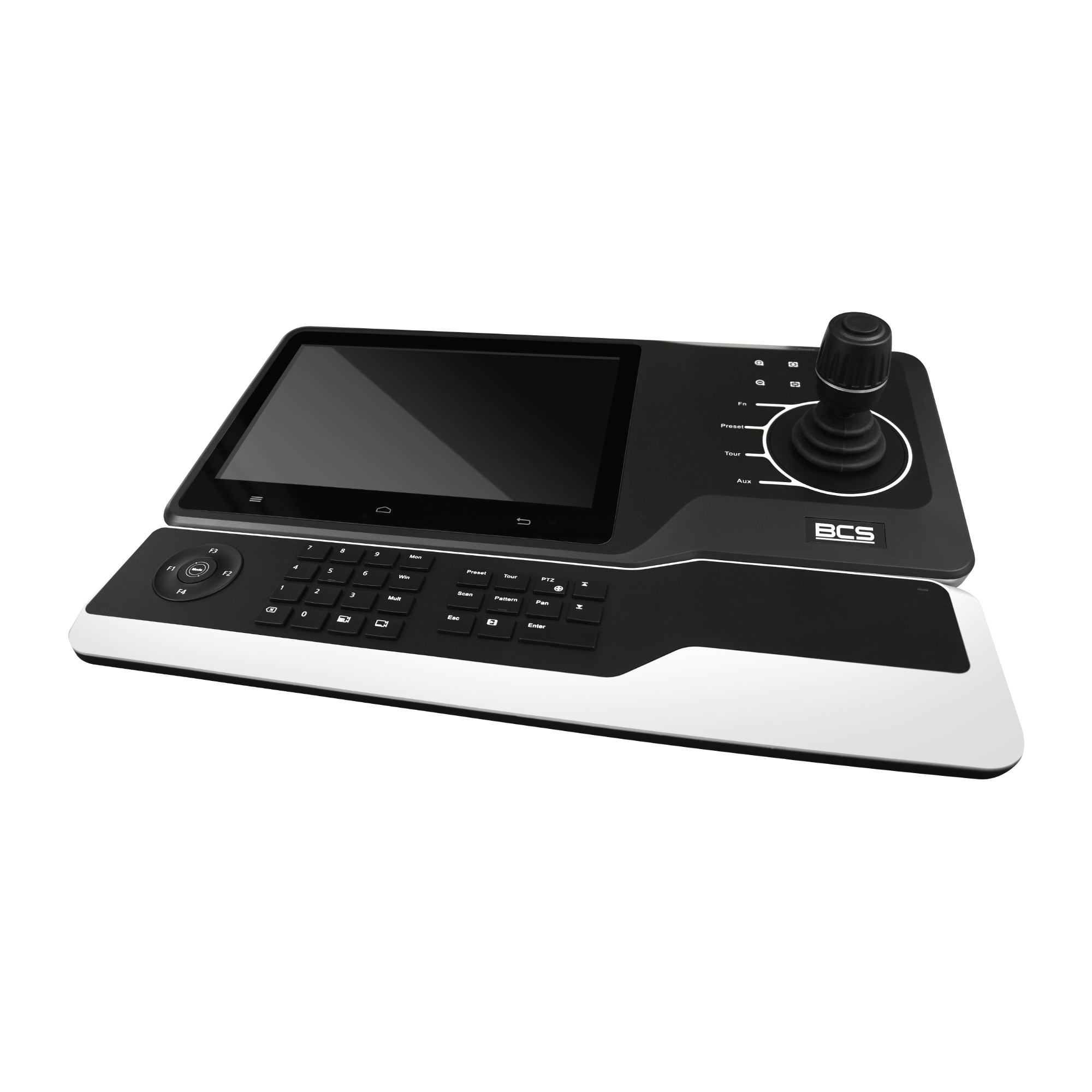 Klawiatura dotykowa z systemem Android. Wsparcie zasilania POE, ekran dotykowy o przekątnej 10,1 cala, obsługujący lokalny podgląd ekranu, Czterowymiarowe sterowanie funkcjami PTZ za pomocą joysticka, Obsługa dekodowania H.265, H.264, maks. 1 kanał 4K@30 lub 4 kanały 1080P@30, Obsługa TV WALL, Przyciski na klawiaturze umożliwiają wykonywanie takich operacji, jak powiększanie, ustawianie ostrości, trasa, ścieżka, preset, a także umożliwiają korzystanie z przysłony, wycieraczki i ustawień wstępnych. Wejście i wyjście audio, głosnik, 1×RJ-45 port (10/100/1000M), WLAN, 1 USB3.0, 2 USB2.0, RS485, WIFI 2.4Ghz 5Ghz 150Mbps, zasilanie 12V AC 4A, pobów mocy <48W, warunki pracy -10°C ~+55°C 10%~95% RH, wymiary 425mmx194mmx59mm, 421mmx105mmx26mm(klawiatura).