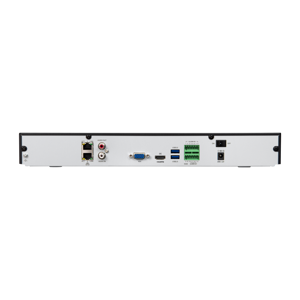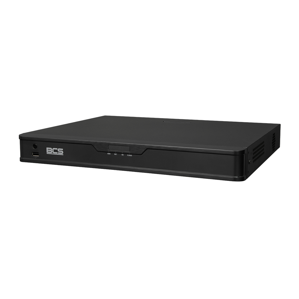 Rejestrator IP 32 kanałowy marki BCS Point. Przystosowany do współpracy z kamerami do 12 Mpx. Kompresja H.265+/H265/H.264+/H.264, wyjście HDMI(3840×2160), VGA(1920×1080), obsługa P2P(chmura), Archiwizacja: 2x HDD (do 8TB każdy), interfejsy 2×USB2.0, 1xUSB3.0, RS485, Wejście i wyjście audio. Zasilanie: 12V DC.