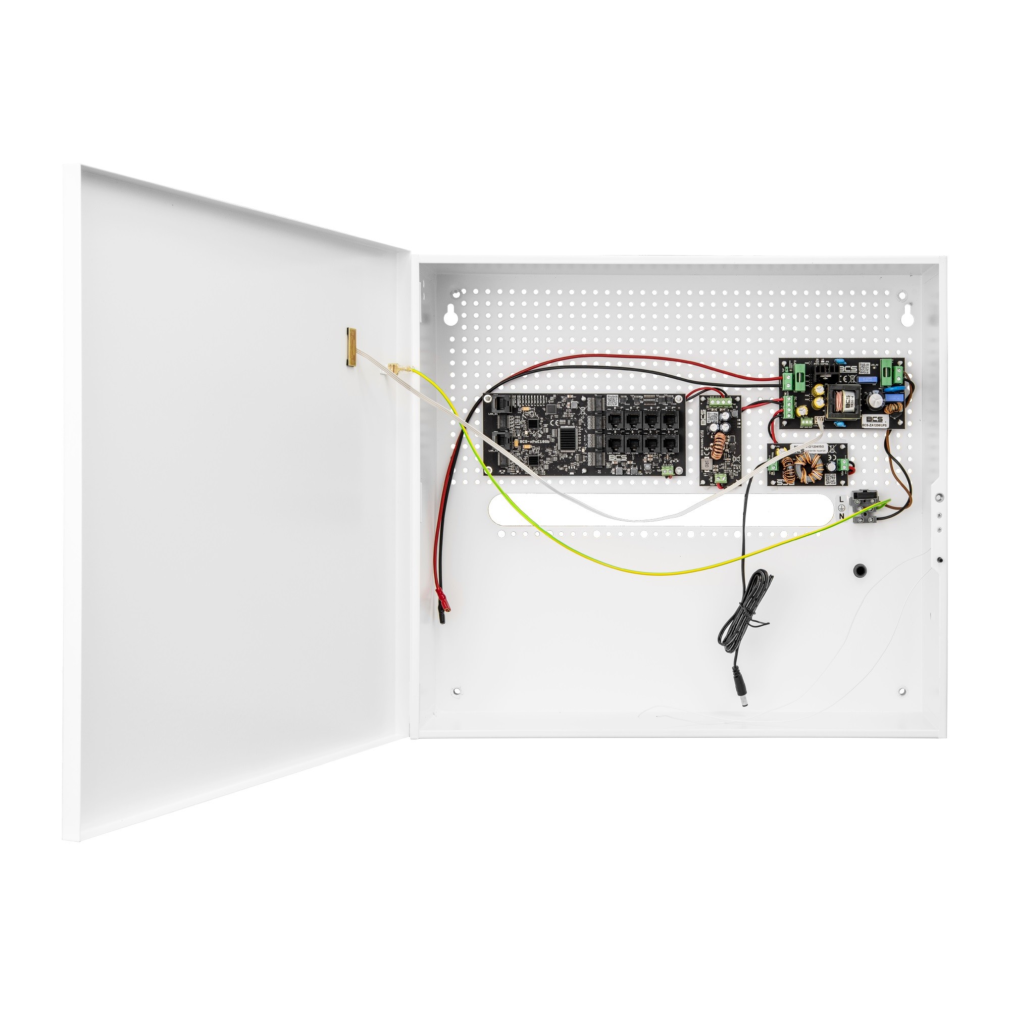 Urządzenie zamknięte jest w obudowie wewnętrznej BCS-H stanowiącej wygodne rozwiązanie problemu estetycznej zabudowy urządzeń monitoringu oraz zakończenia okablowania wewnątrz budynków. Obudowa wykonywana jest z blachy stalowej, lakierowanej proszkowo na półmatowy, biały kolor.