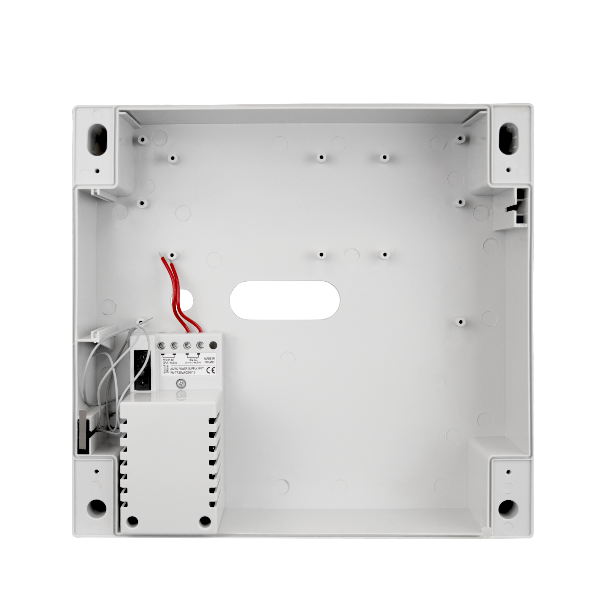 PA-BOX 7 to plastikowa obudowa natynkowa z wbudowanym transformatorem wyposażona w temper sabotażowy NC.