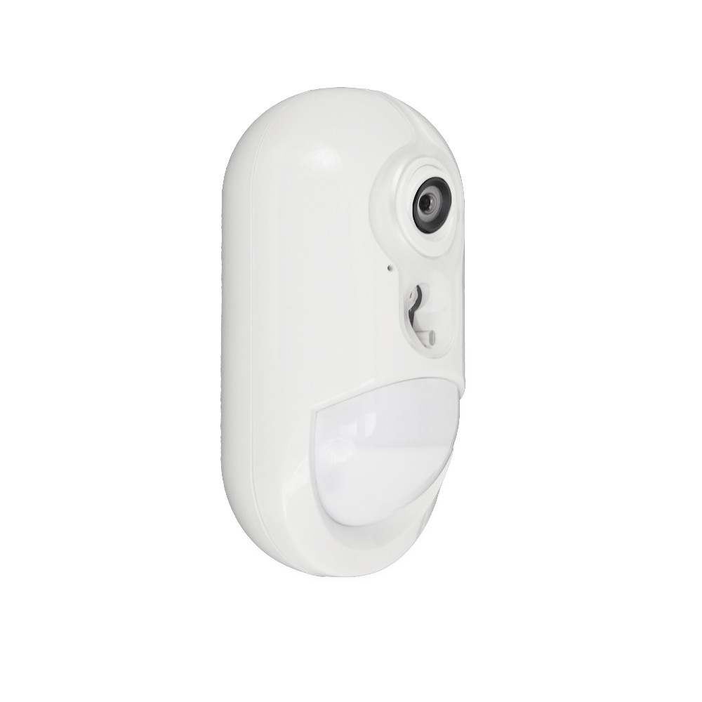 Czujka bezprzewodowa PIR z wbudowaną kamerą i komunikacją dwukierunkową Power G i szerokokątnym zasięgu detekcji: 12 x 12m i 90 stopniowym kątem widzenia, przeznaczona do montażu wewnątrz pomieszczeń.