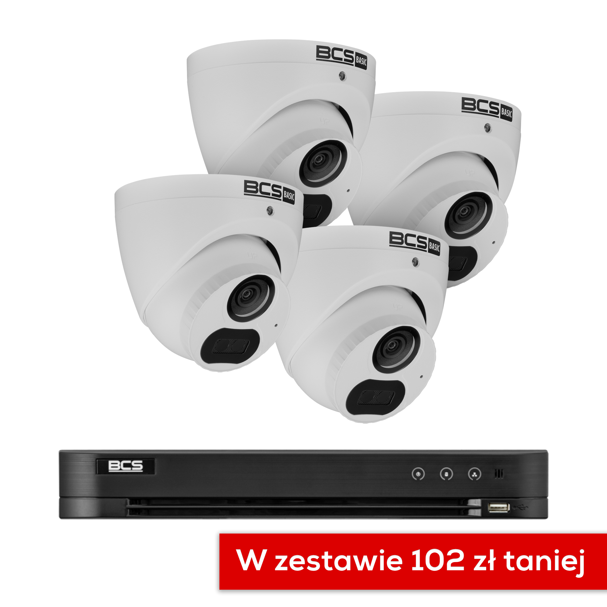 Zestaw zawiera: 1 rejestrator BCS-V-XVR1601-Ai  4 kamery BCS-B-EA15FSR4(2.0)